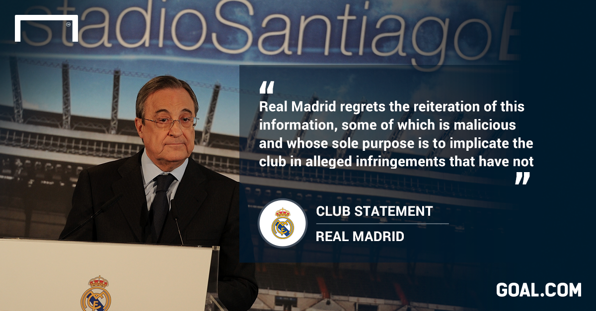 "Real Madrid regrets the reiteration of this information, some of which is malicious and whose sole purpose is to implicate the club in alleged infringements that have not been committed."